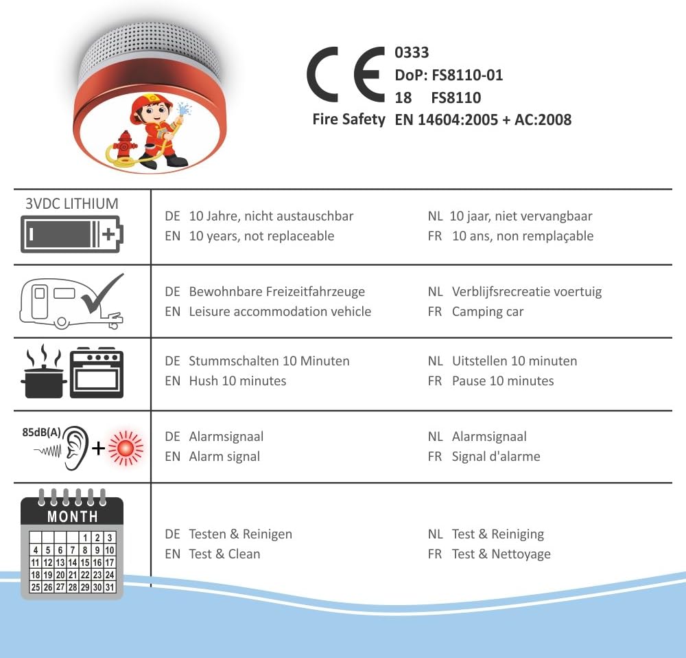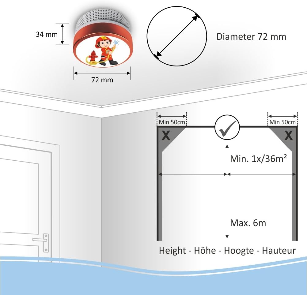 Erhältlich in zwei verspielten Designs - Feuerwehrmann und Elfen Prinzessin- kombinieren diese Feuer Melder Sicherheit mit einem kindgerechten Aussehen und sind somit eine beruhigende Ergänzung für jedes Kinderzimmer.